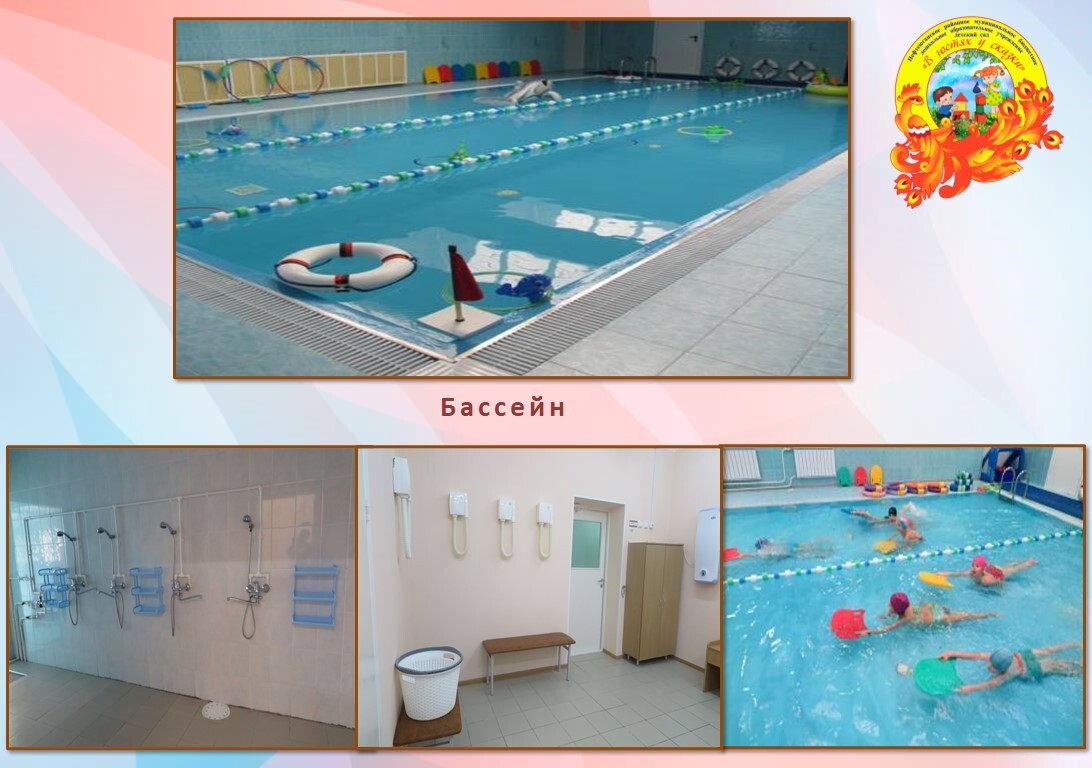 - Бассейн предназначен для проведения занятий плаванием, а также спортивных праздников и развлечений. Для занятий плаванием имеется необходимое спортивное оборудование: баскетбольная плавающая сетка, доска плавательная, кольцо тонуюшее, мячи, нарукавники, надувные игрушки, обруч с грузом, с поплавком, пластины для нудолсов, разделительные дорожки (12м, 6м), спасательные круги, футбольные надувные ворота, футбольные надувные мячи и многое другое.